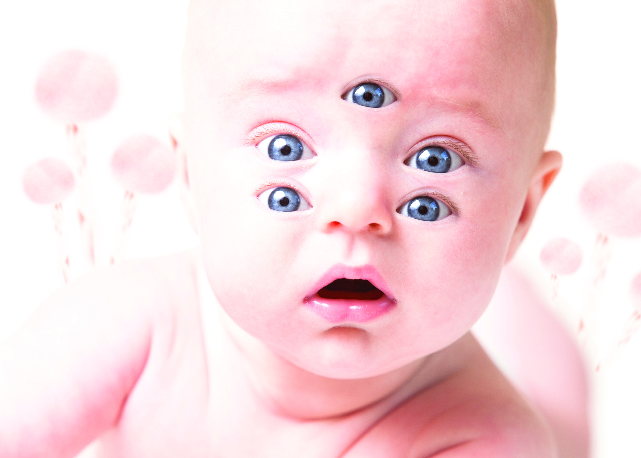 I selected the eye with the clone stamp and began to duplicate it around the baby's face to finish this simple project