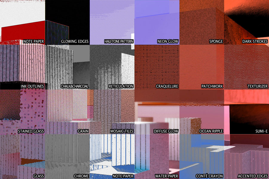 For this project we had to take a busy looking or quite detailed image and cut it into 24 parts with a ruler, then apply a filter per each 24 spots to show what the filter does to the image.
