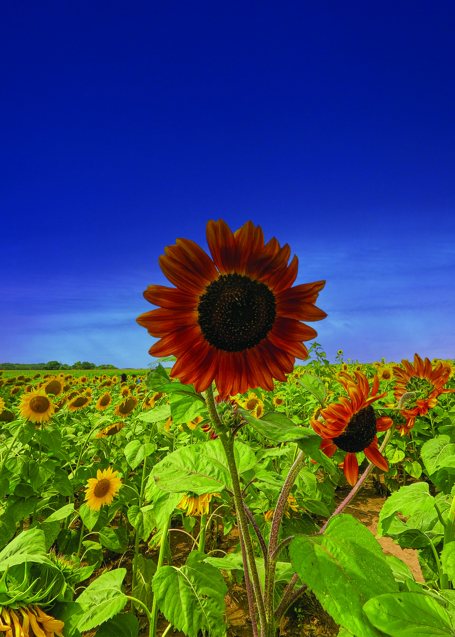 This one was simple, I used the sky replacement tool from the edit menu and selected the sky and replaced it with a premade sky template and gradient, I had to be in RGB mode for this to work