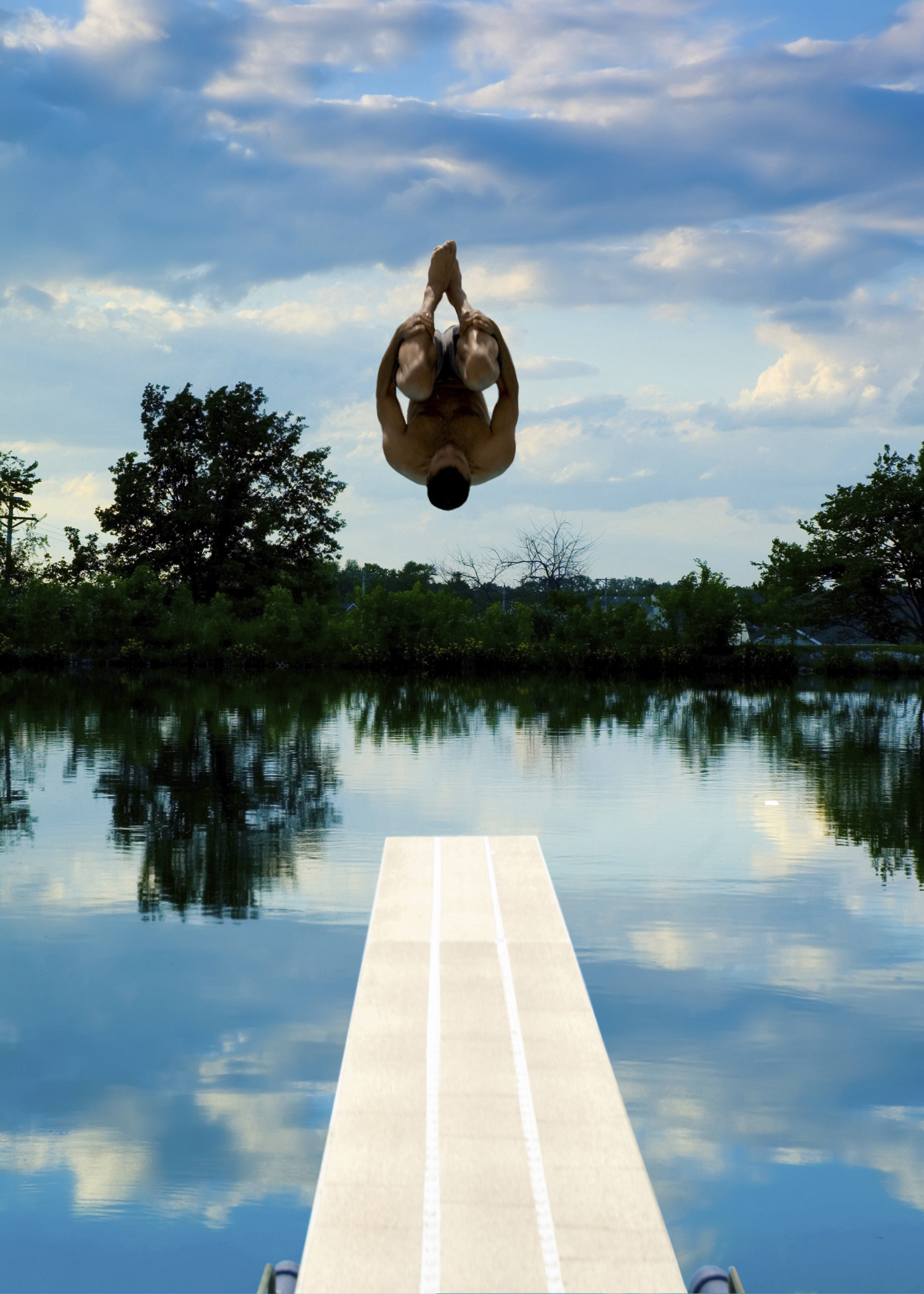 I used the content aware fill and selected the diver as I then removed him with the tool, I repeated the same steps with the diving board