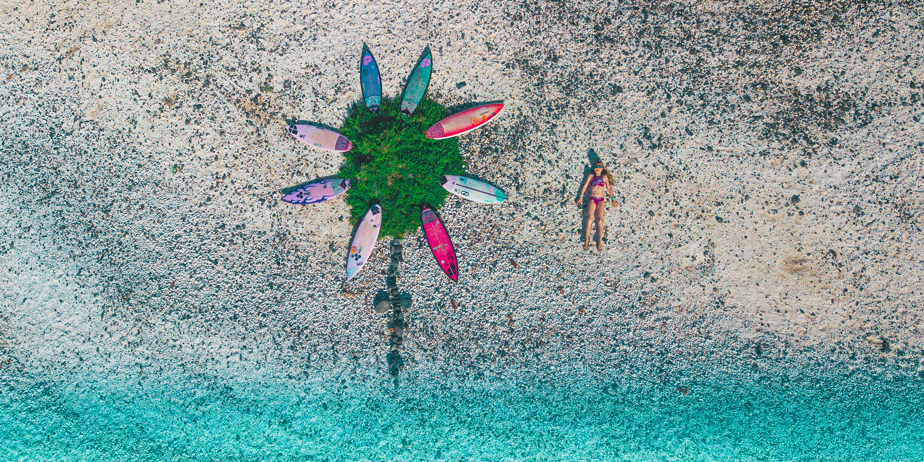 I used the clone stamp tool to remove the surf boards, rock path, the person, and then I changed the shape of the mound of grass a bit with the clone stamp tool to finalize the ending result.