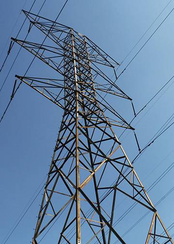 Using the channel selection I would take the blue channel and mute out the blue to be white, while leaving the power lines to be black, this would cause the two objects to be easily seperated so I can remove the background with ease.